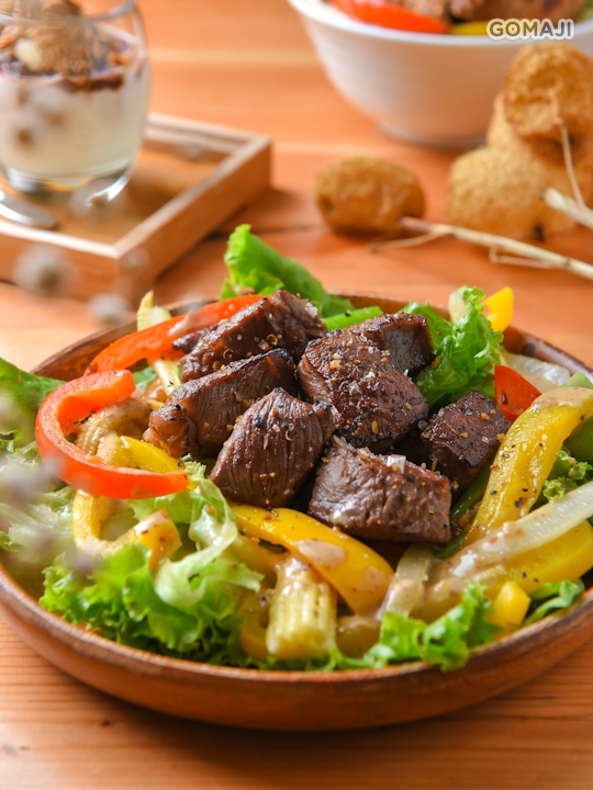 清爽沙拉搭配軟嫩不柴的骰子牛肉,口口欲罷不能。