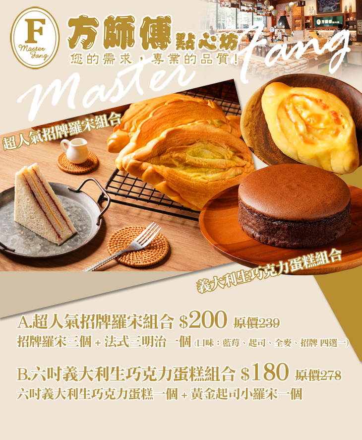 高雄超人氣烘焙坊!紅遍大江南北的『招牌羅宋』為店內的明星商品,每三秒就賣出一顆,吸引不少饕客前往品嚐,更是來到高雄遊玩必買的伴手禮之一。【方師傅點心坊】提供琳琅滿目的麵包,蛋糕甜點等也通通都有,多樣化的品項滿足每一個挑剔的味蕾,吃過的客人都讚不絕口,被其香濃可口的滋味征服,保證一試就會終生成主顧,來到高雄,一定要來【方師傅點心坊】盡情採買一番喔!