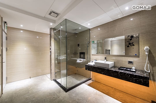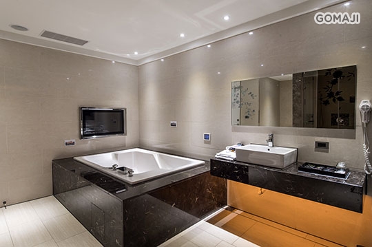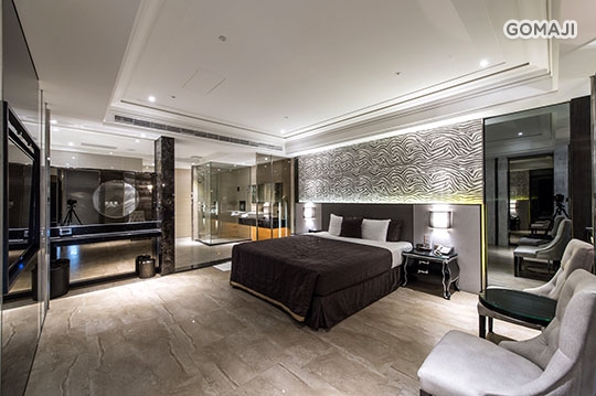 極致寬敞的空間裡,配有五星級飯店專用名床、乾濕分離蒸汽室、花灑淋浴、雙人大型汽泡式浴缸等頂級設備,舒放身心疲勞、補充滿滿活力,給您媲美五星級般的奢華享受!