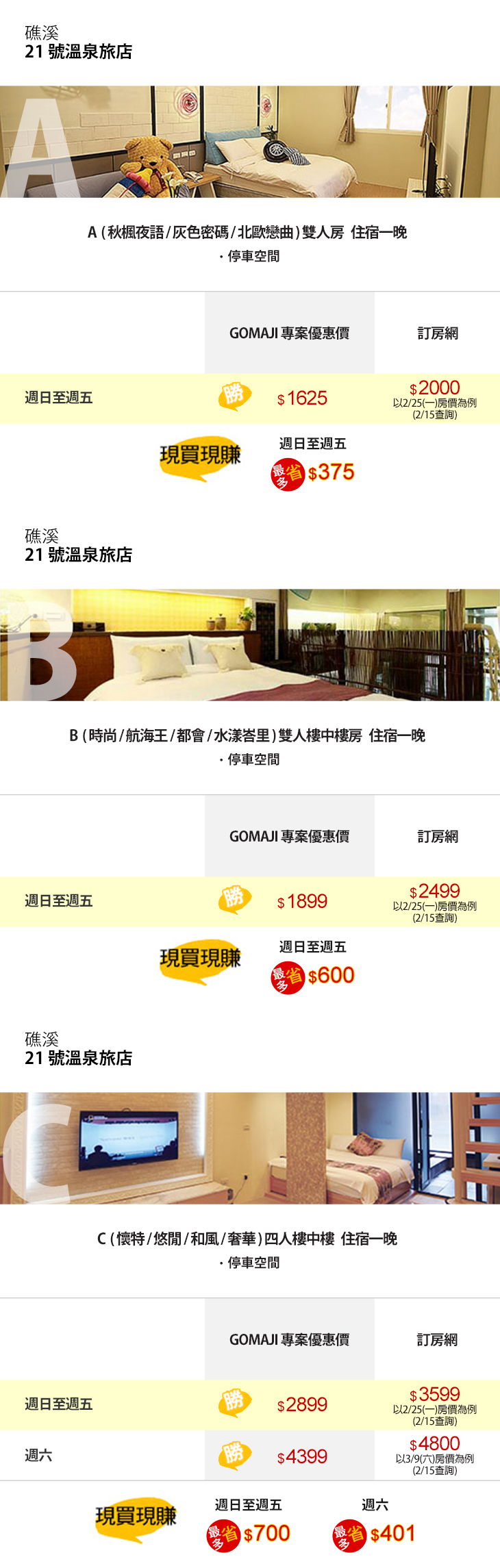 ※ 房型每間配置與設計格局不盡相同,依現場房況安排為主。