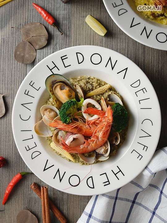 位於高雄市三民區澄清路575號,潔淨寬敞的店內空間給人舒適明亮的美好氛圍!以希臘神話傳說裡帶給人們愉悅與快樂的女神赫朵那 HEDONA為店名,希望前來享用美味餐點的顧客都能擁有愉快時光。店內提供風味十足的排餐、義大利麵、燉飯與飲品等,每份料理都是一場味覺與視覺的饗宴!
