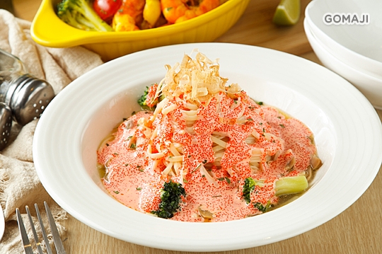 增豔飽滿的視覺完美呈現柴魚明太子麵;讓你,紅了眼眶,吃個精光。