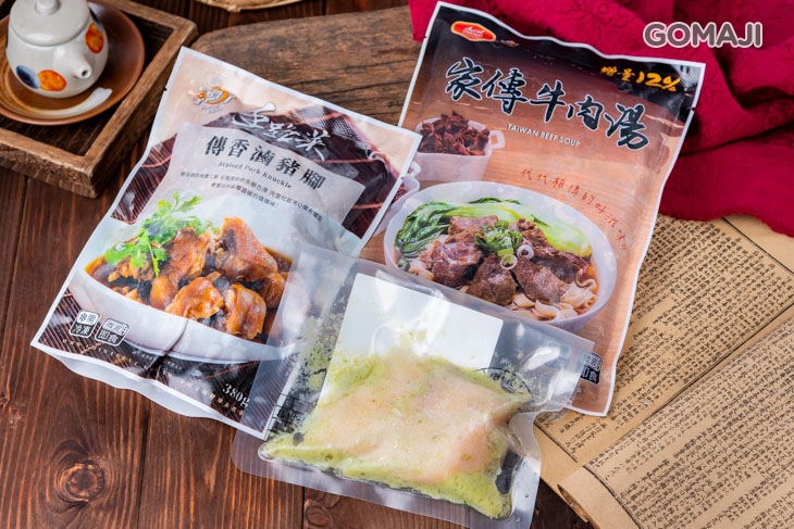■ 成份:豬腳、水、醬油、蔥、糖、味噌(蓬萊米、黃豆、鹽、酒精)、醬油膏【水、非基因改造黃豆胺基酸液、純釀造生醬油(非基因改造高蛋白豆片、小麥)、食鹽、轉化液糖(蔗糖、水)、乙醯化己二酸二澱粉、糯米、甜味劑(甘草酸鈉、蔗糖素)、酵母抽取物、DL-蘋果酸】、薑、蒜、大豆沙拉油、辣椒、八角、花椒、甘草、玉桂皮、鹽、月桂葉