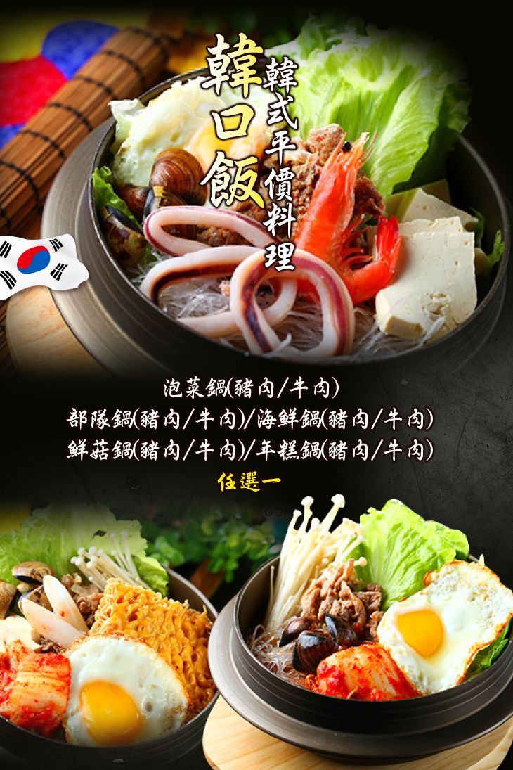 總是看著韓劇裡的美食羨慕不已嗎?【韓口飯-韓式平價料理】推出超值雙人餐給麻吉們一飽口福囉 ~ 大口豪邁地享用美妙佳餚,道地風味只要一口便能征服你的胃,快揪好友一起來享用!