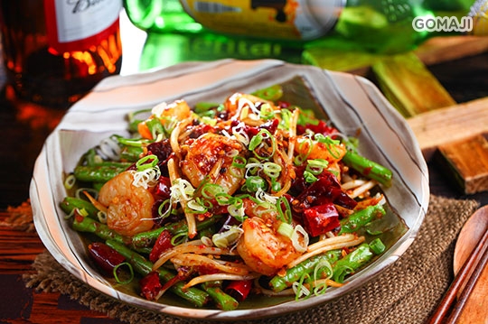 香辣過癮的迷人蝦仁,搭配甜脆可口的四季豆,燦放嘴裡無盡的醉心饗宴!