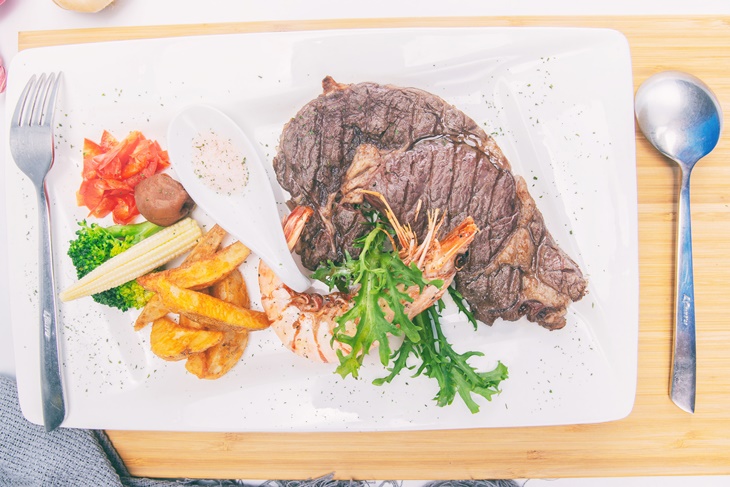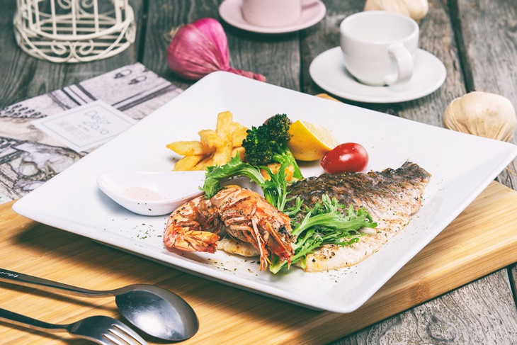 粉嫩的肉質帶著細緻的紋理,大口咬下享受鮮香肉汁在口中迸發,恰到好處的鹹香氣息在口中蔓延,配上時蔬的清甜清爽,美味不膩口,海陸饗宴令人讚賞萬分!