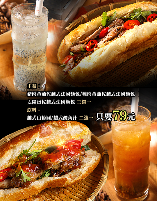 夾進豐沛用料,補充一日的活力來源!外脆內香軟的道地法國麵包,完美將食材緊緊包覆,你儂我儂,愛不釋手。