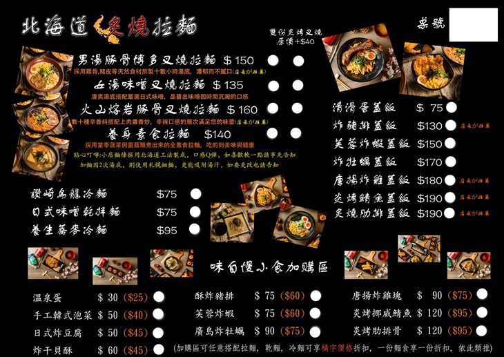 多間分店可用!不必花大錢就能品嘗來自日本的道地拉麵!老闆堅持挑選優質食材,以繁複工序以及嚴謹的精神製作出濃郁而多層次的美味湯頭,精心製作的叉燒肉更是軟嫩無比,將多樣化美味配料放入碗中,成就出一碗碗道地而美味的北海道拉麵!