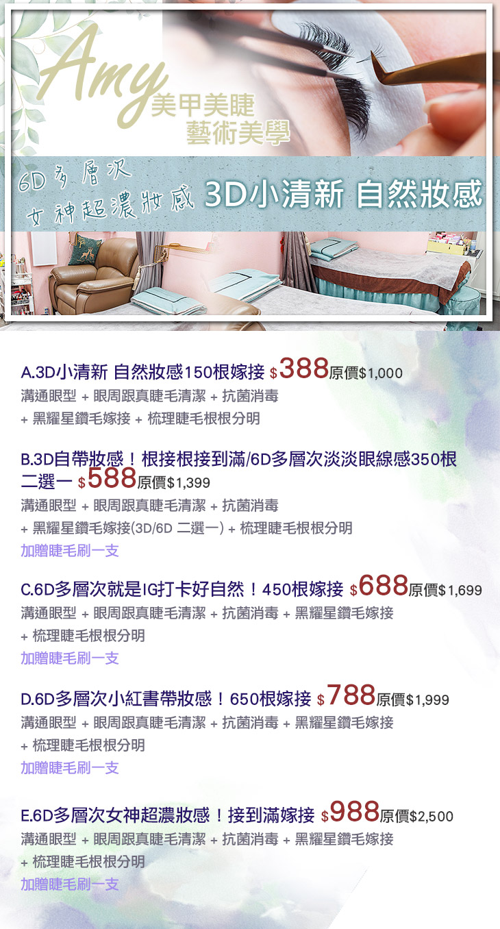 A.3D小清新 自然妝感150根嫁接 / B.3D自帶妝感!根接根接到滿/6D多層次淡淡眼線感350根 二選一 / C.6D多層次就是IG打卡好自然!450根嫁接 / D.6D多層次小紅書帶妝感!650根嫁接 / E.6D多層次女神超濃妝感!接到滿嫁接