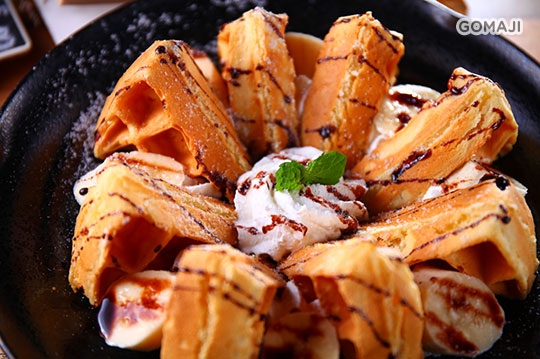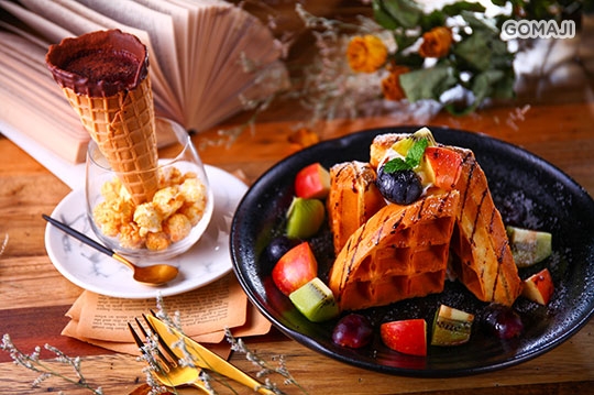 香蕉巧克力鬆餅/季節水果鬆餅 二選一 + 招牌甜筒咖啡/抹茶拿鐵/熱巧克力 三選一