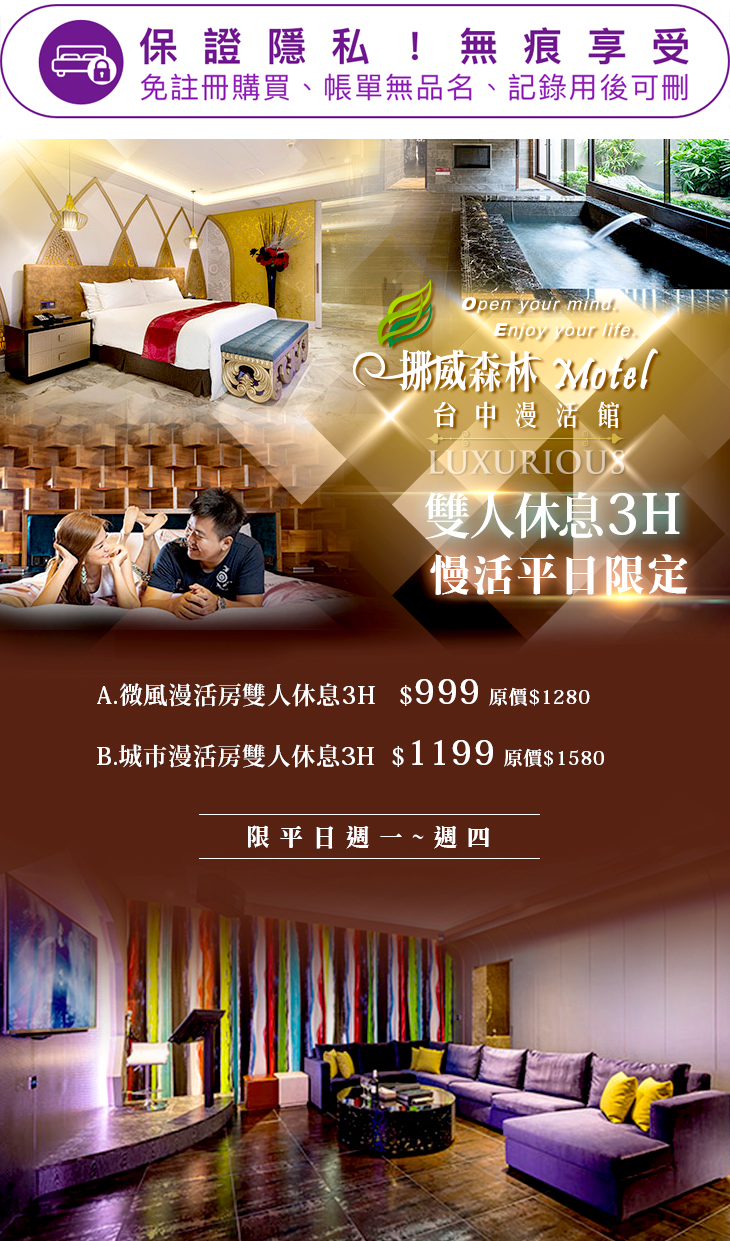 您是否也跟我一樣,工作了一段時間,翻開行事曆,才驚覺許久沒有為自己安排一趟輕旅行,無論是和伴侶、閨蜜、家人還是朋友,在生活及工作忙得不可開交、喘不過氣時,忘了好好讓自己放鬆一下!隸屬挪威森林旅館集團之【台中漫活館】,打造多款特色房型,以燈光、花紋、色彩三大元素作房型的設計延伸,讓您能好好放鬆,讓身心的壓力與疲倦獲得釋放!本次與GOMAJI聯合推出麻吉獨享住宿優惠,請別再猶豫!趕緊空下時間,為旅程安排計畫一下吧!
