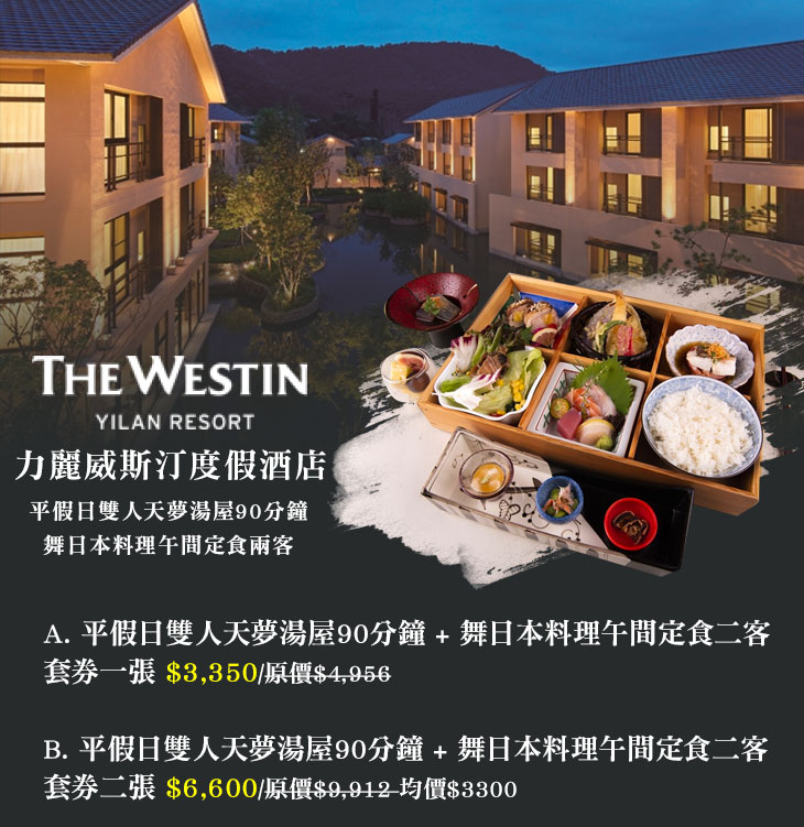 【宜蘭-力麗威斯汀度假酒店】感謝麻吉們熱烈搶購,已全數賣光光。