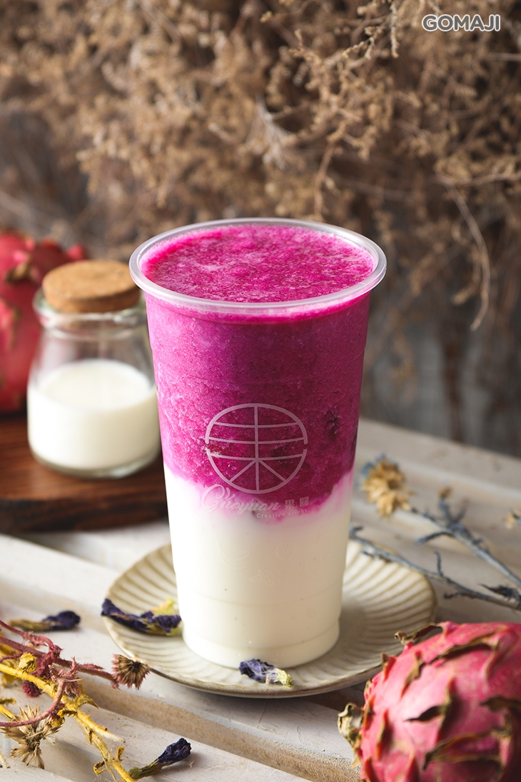 火龍果的迷人紫紅搭配香蕉牛奶的乳白濃醇,完美搭配讓視覺為之驚艷!入口感受恰到好處的綿密滋味,伴隨著香蕉濃郁香氣,層次豐富讓人回味再三!