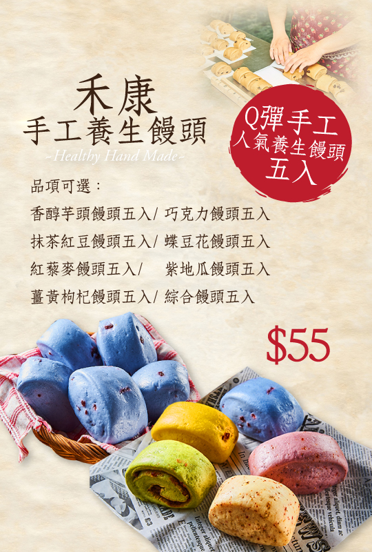 結合傳統手法與創意巧思,推出多種口味的養生饅頭!顆顆飽滿彈Q、份量紮實,適合做為早餐、午餐、宵夜與甜點,全家大小都喜歡的美味就在這!堅持用最好的麵粉,不計成本使用王冠牌特級粉心粉,無添加任何漂白劑,防腐劑,及其他添加物。純天然發酵、絕不加發粉、用的是法國金燕子牌酵母。全程使用山泉水,非使用自來水。