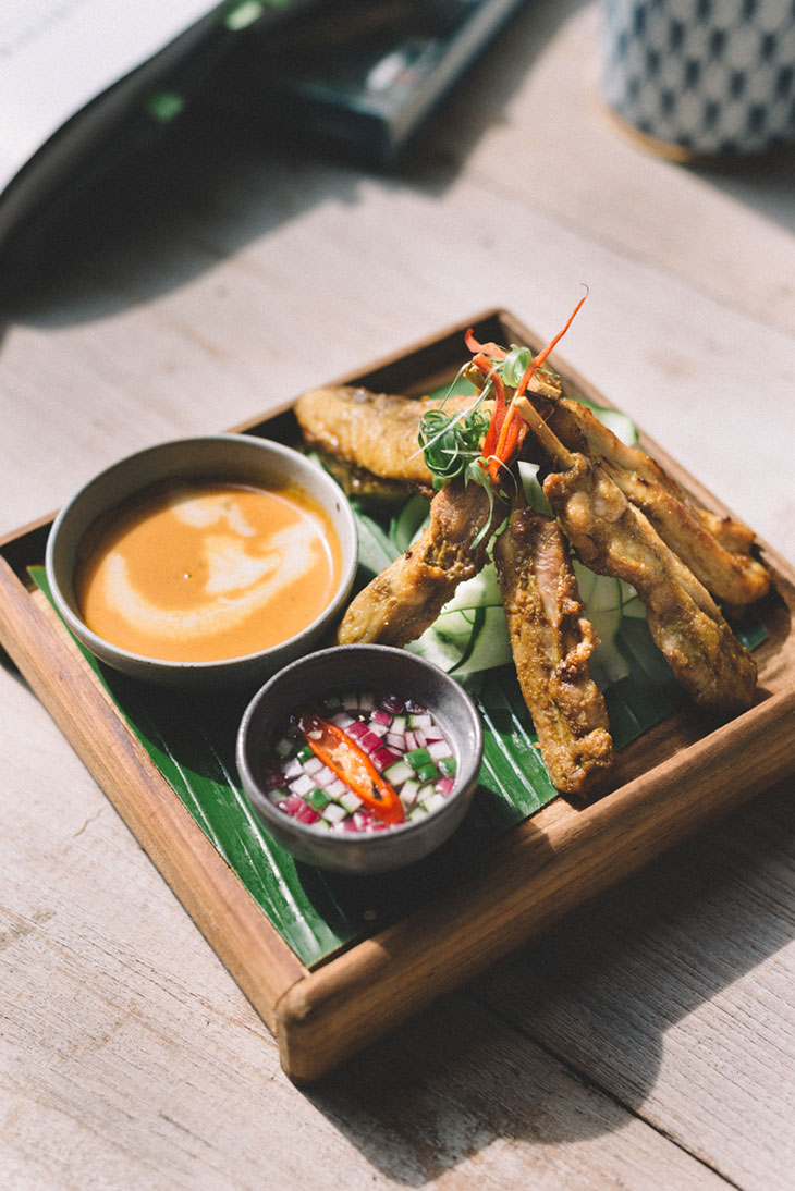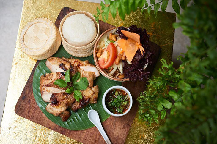 採用泰國傳統糯米製作,糯米香氣加上醬漬入味皮酥肉嫩的無骨雞腿肉,加上泰式青木瓜沙拉,絕配!