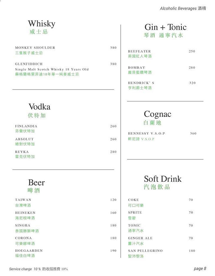 台中米平方店、彰化員林店、高雄旗艦店 單點菜單