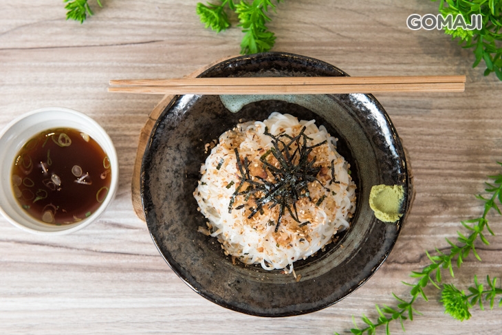 悶熱沒胃口的一天,來上一碗京都沾麵再適合不過!特製日式和風醬汁,搭配烹煮至熟的麵條一同入口,味道鹹香順口的醬汁,被麵條牢牢吸附,入口醬香麵Q ~ 與上頭白芝麻、海苔相襯品嚐,幸福滋味果真耐人尋味!
