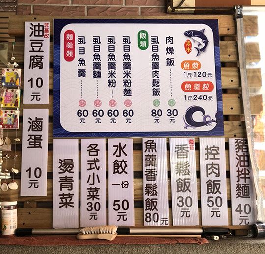 特別推薦:控肉飯、虱目魚羹、豬油拌麵、虱目魚羹肉鬆飯