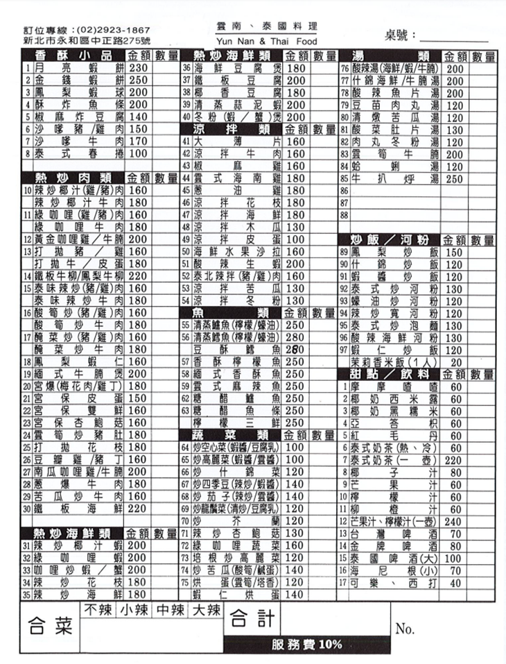 金口褔 雲泰料理(永和店) MENU