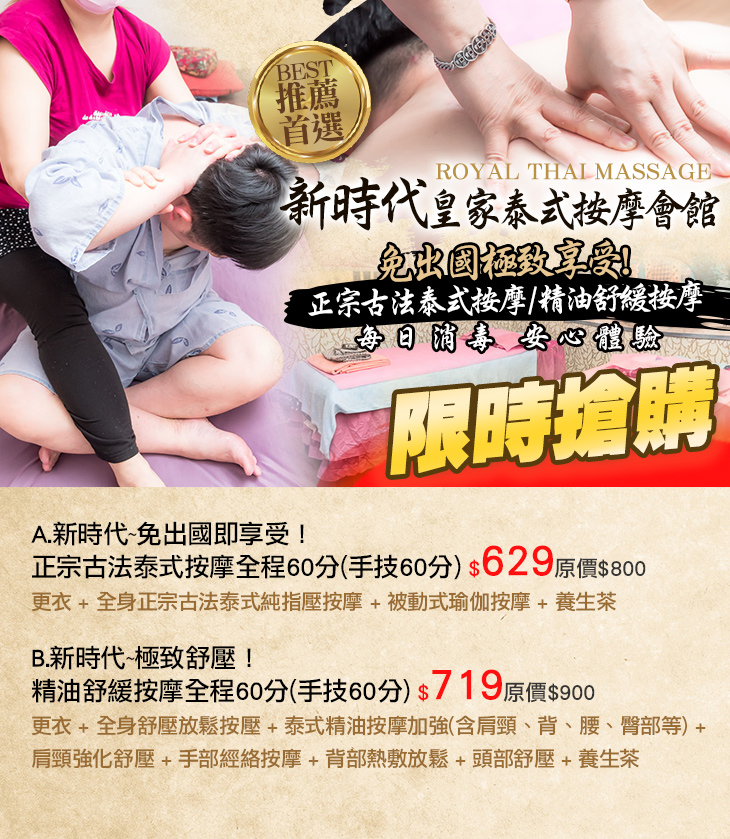 A.新時代~免出國即享受!正宗古法泰式按摩全程60分(手技60分)