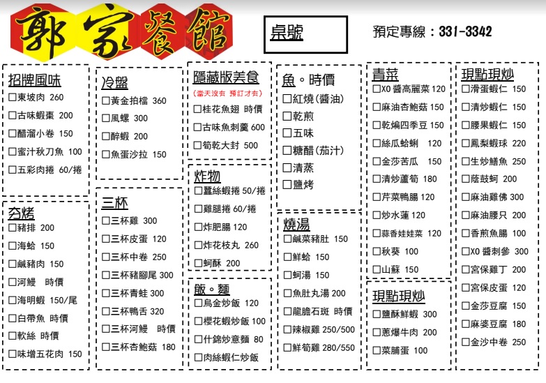 【郭家餐館】 台南市東區裕和路 92 號的郭家餐館,溫馨簡約的迷人環境,讓人一進門便捨不得離開,搭配家常的精緻料理,炒飯、東坡肉、以及當日新鮮海魚等豐沛食材,打造高貴不貴的美味餐館。 東坡肉 入口即化的新鮮東坡肉,肉質軟嫩細緻,自然不造作,超級好下飯。 三杯中卷 櫻花蝦炒飯 粒粒分明的櫻花蝦炒飯,飯香細緻,每一口都能嚐到大海的鮮味。 烏金炒飯 肉絲蝦仁炒飯 什錦炒意麵 菜脯蛋 蔥蛋 炒水蓮 宮保皮蛋 絲瓜蛤蜊 蒜香娃娃菜 芹菜鴨腸