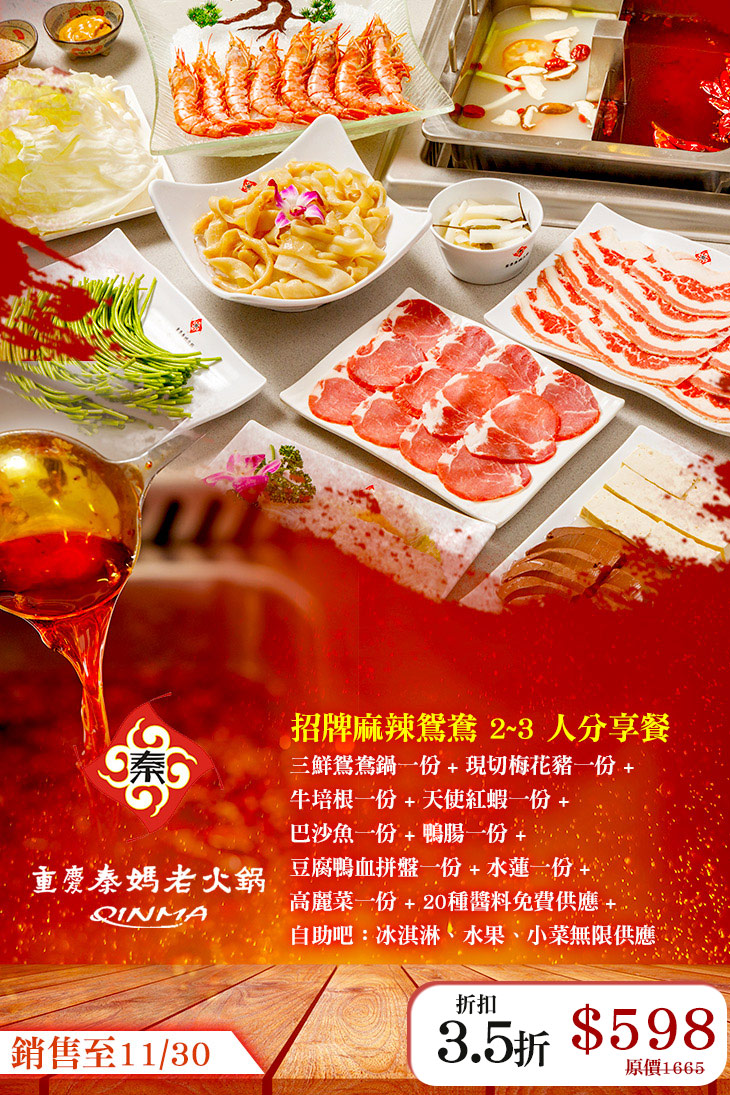 全球逾 700 間分店國際知名餐飲連鎖品牌【重慶秦媽火鍋】來台首間分店!榮獲不少媒體採訪報導!重慶秦媽火鍋採用重慶大巴山的辣椒、花椒及秦媽獨門天然香辛料,經中央工廠自動化熬煮湯頭,鮮而不膩,打造天然、健康的口感。更令人為之驚豔的是,秦媽多道獨門功夫菜:霸王牛肉、功夫酥肉、玫瑰牛肉丸、現磨黑豆腐、重慶苕粉等特色料理與台灣當地的口味結合,重新挑戰市場接受度!同時,以綠色健康為主要述求,屏除一般吃鍋又油又膩的刻板印象。