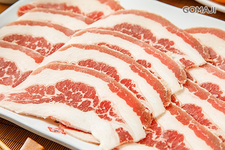 嚴選新鮮的澳洲梅花豬,此部位口感較香軟細嫩,因此深受許多人喜愛。輕燙數秒,一片片由紅轉粉透的色澤,吹彈可破,香嫩驚艷,惹人喜愛,搭配規律整齊的精緻擺盤,讓視覺與口感上都讓人無從挑剔!
