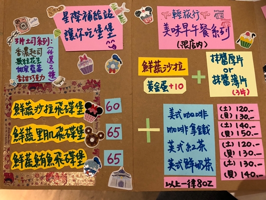 特別推薦:TE莊園單品冰滴、鮮蔬里肌飛碟堡、焦糖瑪奇朵、巧克力棉花糖厚片吐司、手沖精品咖啡、黑糖拿鐵、抹茶歐蕾、巧克力歐蕾