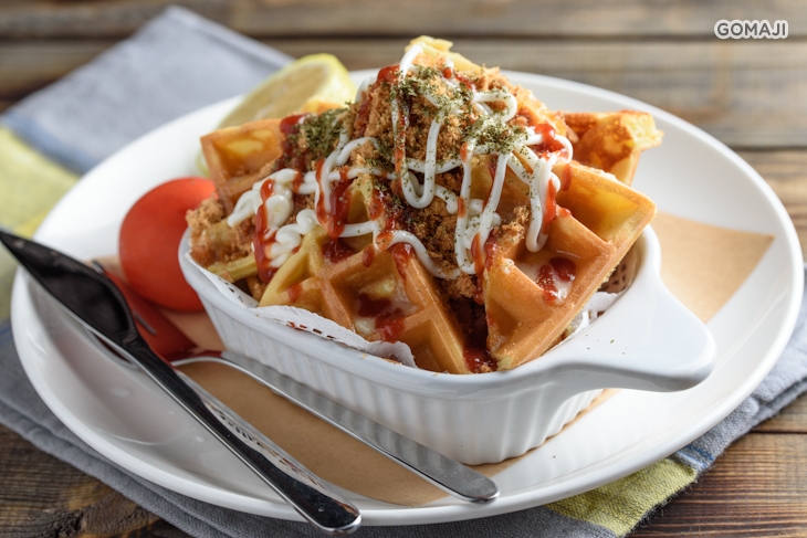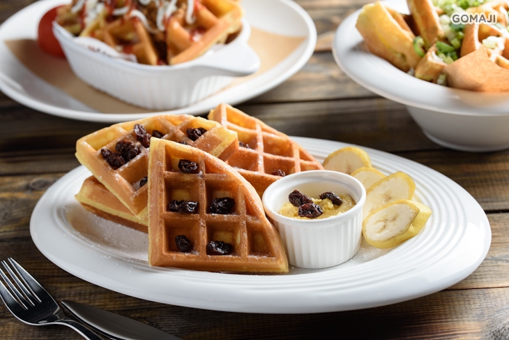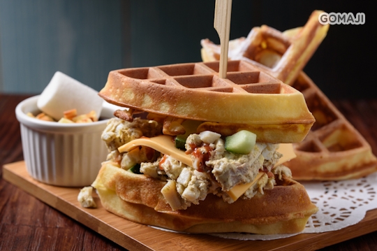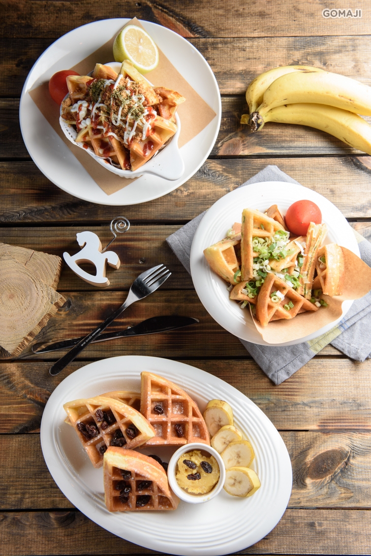 採用乳酪、青蔥等,搭配現烤的鬆餅,甜甜鹹鹹的滋味令人感到大大的滿足,不論當正餐或是點心都非常的適合唷!