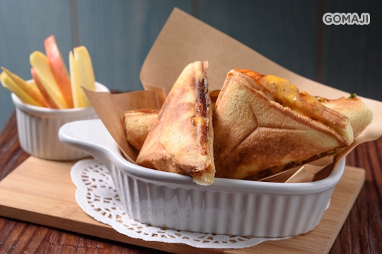 雙重起司鋪滿在吐司上,一進烤箱瞬間融化結合,一口咬下起司滿溢口中,加上吐司的酥脆,多重口感令人一口接一口,是起司控不可錯過的飯後甜點和下午茶!