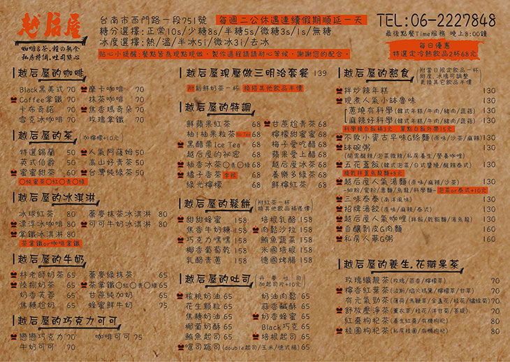 營業時間:週一至週日 11:00~21:00 每週二公休