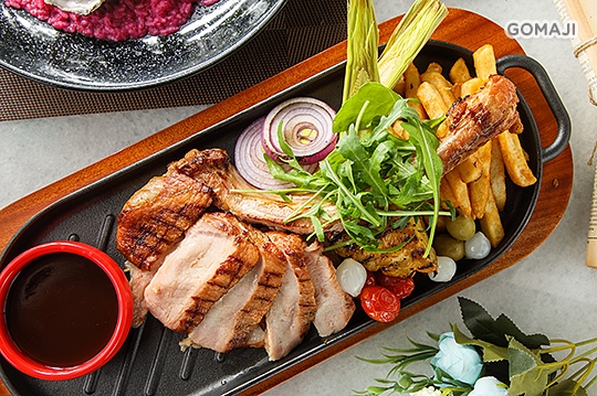 精緻豪華的戰斧豬排一端上桌就讓人為之瘋狂!豐富用料、完美擺盤令人想大快朵頤一番!細緻的紋理閃耀著油亮光澤,肉質軟嫩鮮美,越咀嚼越能感受其難以言喻的美妙滋味!
