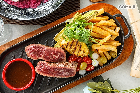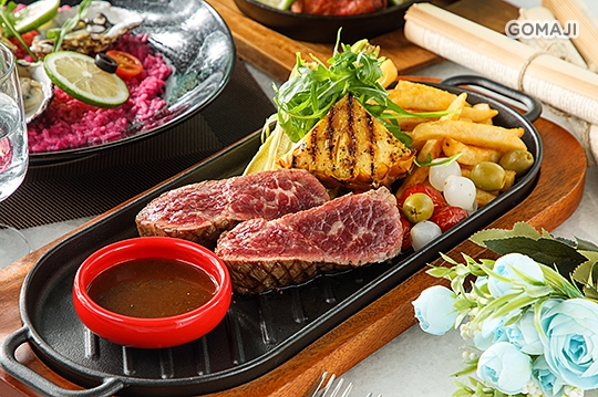 眼前兩大塊柔軟細緻的牛小排瀰漫一股誘人香氣,拿起刀叉淺嚐一口牛肉原味,再沾上一旁醬料賦予肉質鹹香風味,馥郁芬芳氣息滿盈唇齒,久久難忘!