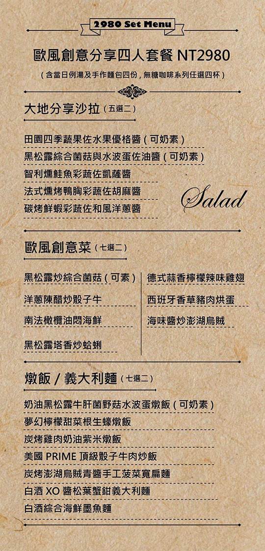 ➯菜色內容依季節時令調整,實際菜色、價目依現場提供為主。