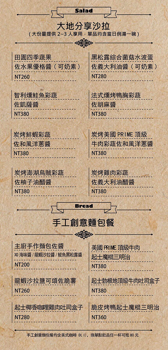 近中壢高商!以口耳相傳的麵包坊起家,而後推出精緻美味的各類餐點!以最樸實的食材,寫下味蕾記憶的美好味道!將當季新鮮食材與柴米油鹽結合,烹調出驚艷人心的好滋味!道道美味皆注入滿滿用心,用餐環境設計也不馬虎,讓您在最舒適的氛圍中品嚐美食帶給味蕾的歡愉!美食與窗外的自然綠意交織,一段極其深刻的饗食之旅就此展開!