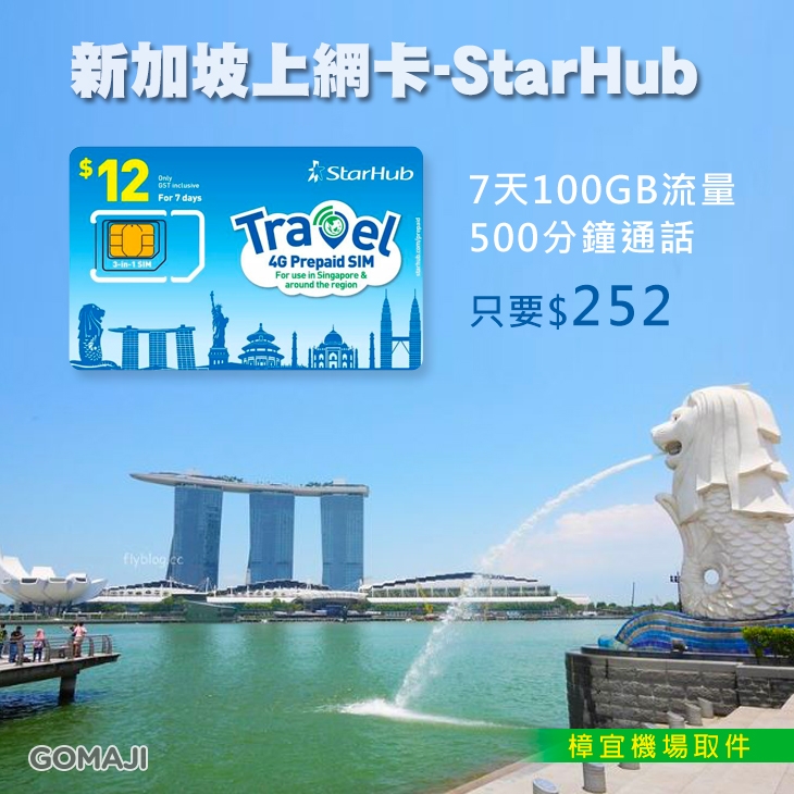 現代人出國旅遊,怎能少了拍照、打卡、分享!前往新加坡旅遊,持StarHub 4G上網SIM卡,不僅能隨時和家人、朋友即時分享樂趣、快速上傳照片至社群平台,更能方便聯繫飯店、導遊或預訂行程,旅遊便利又開心!提供100GB高速網路流量、500通外撥電話、30分鐘國際電話、不限打進來的電話通數,同時貼心提供額外1GB漫遊數據。不需要辛苦排隊購買,抵達新加坡樟宜機場後,輕鬆前往24小時服務櫃台即可領取,迅速換上4G上網SIM卡,展開旅遊歡時光!