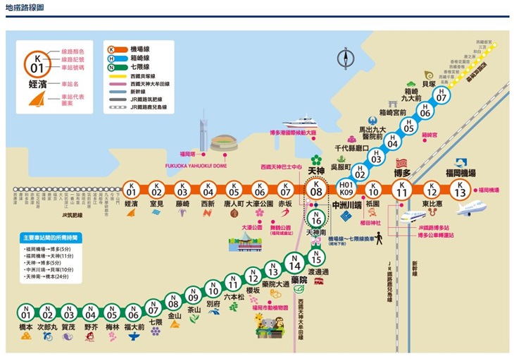 專為外國旅客推出的地鐵二日券,全線35站涵蓋福岡市區多個觀光景點!無論是想前往博多運河城、天神購物、屋台小吃攤或前往古色古香的松風園、福岡城遺跡來場人文薈萃的文化之旅。