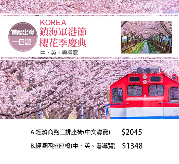 【韓國-鎮海軍港節櫻花季慶典一日遊(首爾出發)】感謝麻吉們熱烈搶購,已全數賣光光。