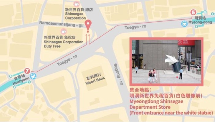・05:55明洞新世界百貨公司白色雕像前集合上車