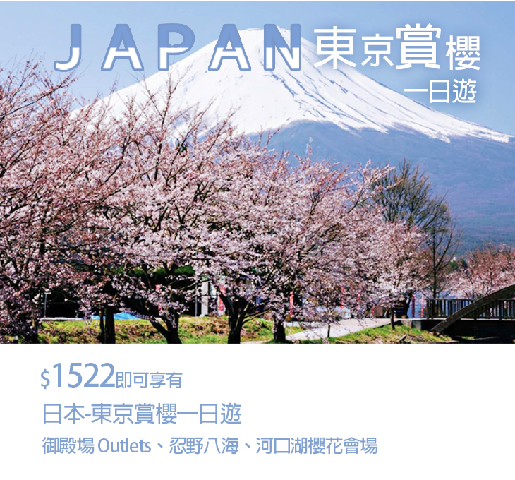 【日本-東京賞櫻一日遊(御殿場 Outlets、忍野八海、河口湖櫻花會場)】感謝麻吉們熱烈搶購,已全數賣光光。