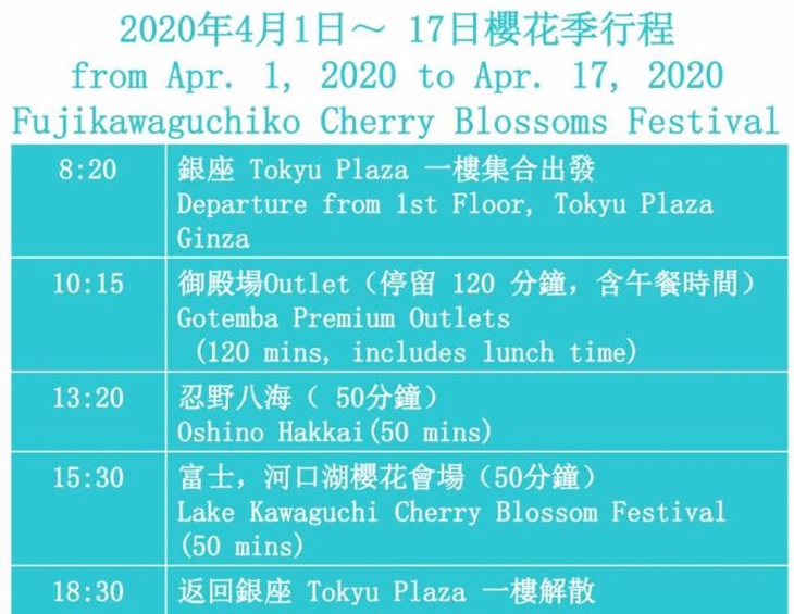・櫻花季行程表(2020 / 4 / 1 - 17 出發行程 )