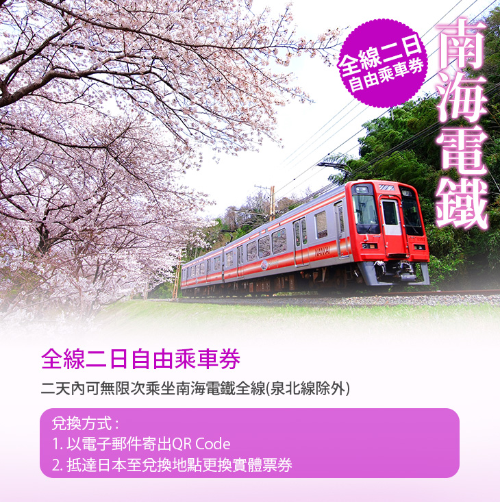 【南海電鐵全線二日自由乘車券】感謝麻吉們熱烈搶購,已全數賣光光。