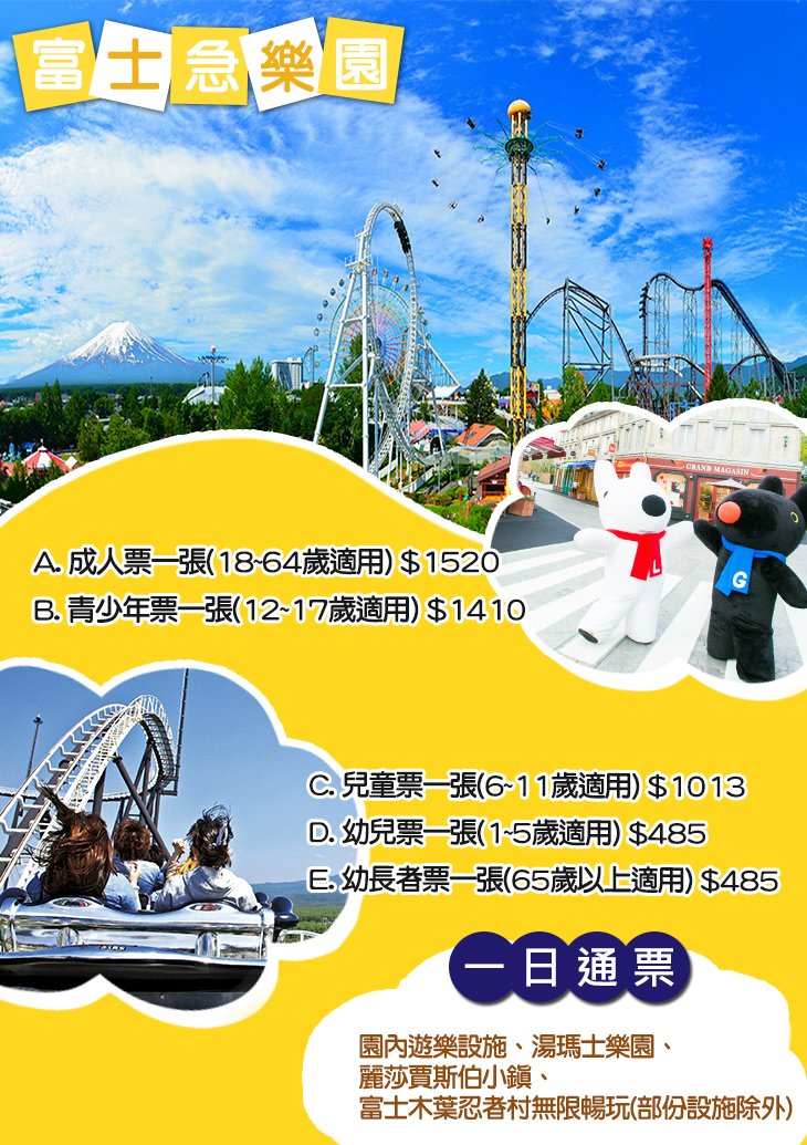 【日本富士急樂園】一日通票