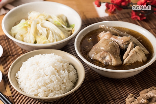120元主餐:麻油雞/麻油嫩雞/麻油里肌/麻油豬肚/麻油豬心 五選一 + 麻油青菜一份 + 白飯一碗