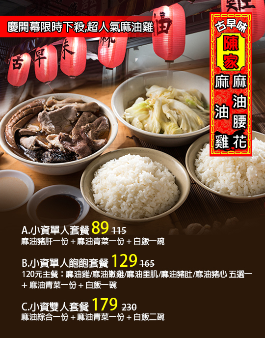 溫潤醇厚的麻油香令人銷魂欲醉,主廚深厚的功力更讓人品嚐到新鮮食材的絕妙,令人食指大動、欲罷不能!快趁優惠搶下好康,到溫馨的【陳家古早味麻油雞】享用滿足的美味大餐!