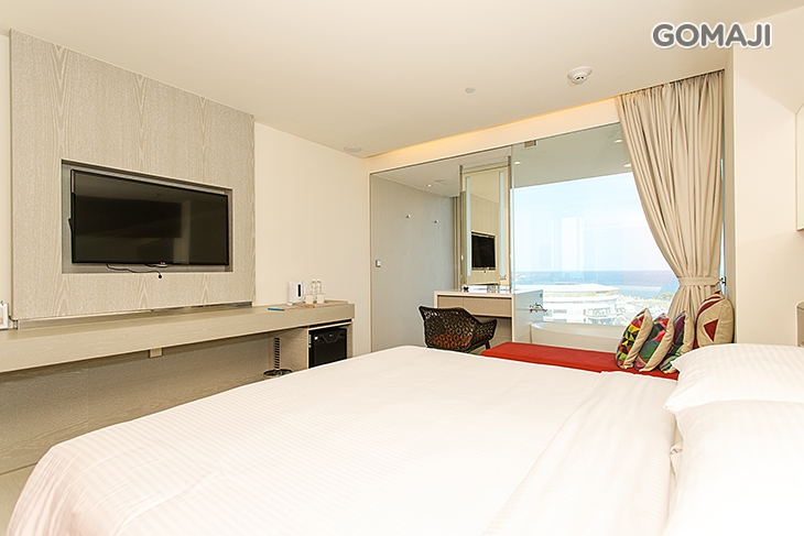 一邊泡澡一邊享受海天一線的景色,在和煦晨曦環抱下甦醒,傍晚有金黃溫暖的落日相伴,恣意放鬆,享受完美的海洋假期。