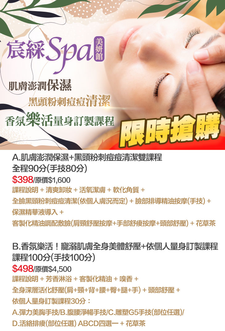 【宸綵 SPA 美妍館】感謝麻吉們熱烈搶購,已全數賣光光。