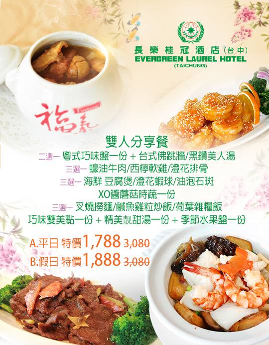 【長榮桂冠酒店(台中)-長園中餐廳】 座落於台中市極具商業潛力的中港商圈,以灰色系的質感,巧妙地營造出國際化的王者風範。優雅恬靜的舒適空間讓您舒緩身心,精緻貼心的服務充分滿足國際商 旅、觀光客及本國客人多樣化的需求。自 1993 年開幕至今服務過世界三大男高音帕華洛帝、卡列拉斯、英國前首相柴契爾夫人、維也納愛樂樂團、馬友友、劉德華等數百位世界名人,在餐飲和住宿的服務品質上 擁有極高的評價。