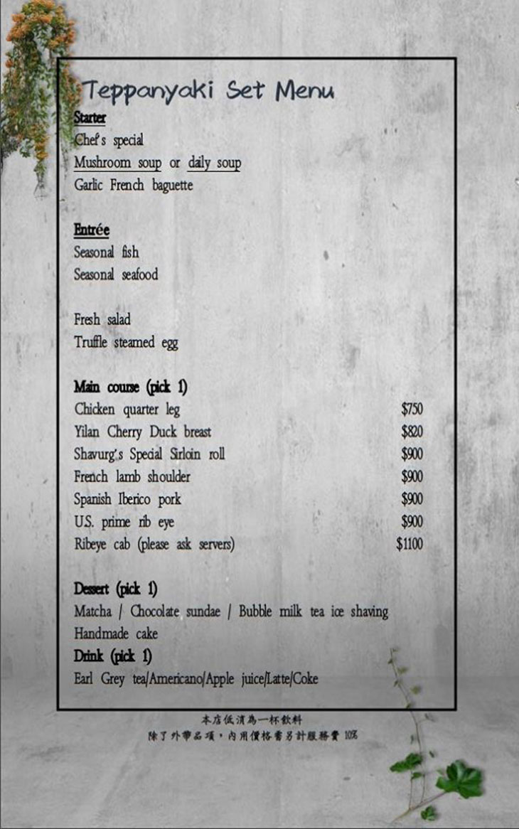 柔嫩香軟的特級沙朗經由主廚快手烹調,精準掌握食材絕佳風味,並以時蔬調味,感受大地的芬芳在兩頰間緩緩醞釀,享用完後輕舔雙唇,餘韻無窮!