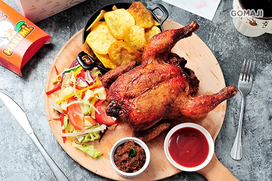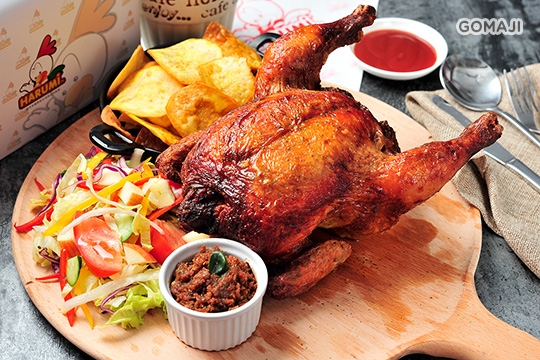 香烤迷人的烤全雞,迷戀這塊紮實厚重的飽滿鮮雞肉。濃香味美的質地,雞汁如膛炸般地在嘴裡瞬間爆開,燙入舌尖的快感與蜂擁而上的層次感,深獲全家大小的喜愛,隨便扒也能吃得有滋有味!